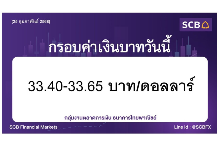 -กลุ่มงานตลาดการเงิน ธนาคารไทยพาณิชย์ ประเมินค่าเงินบาทวันนี้เคลื่อนไหวในกรอบ 33.40-33.65 บาท/ดอลลาร์