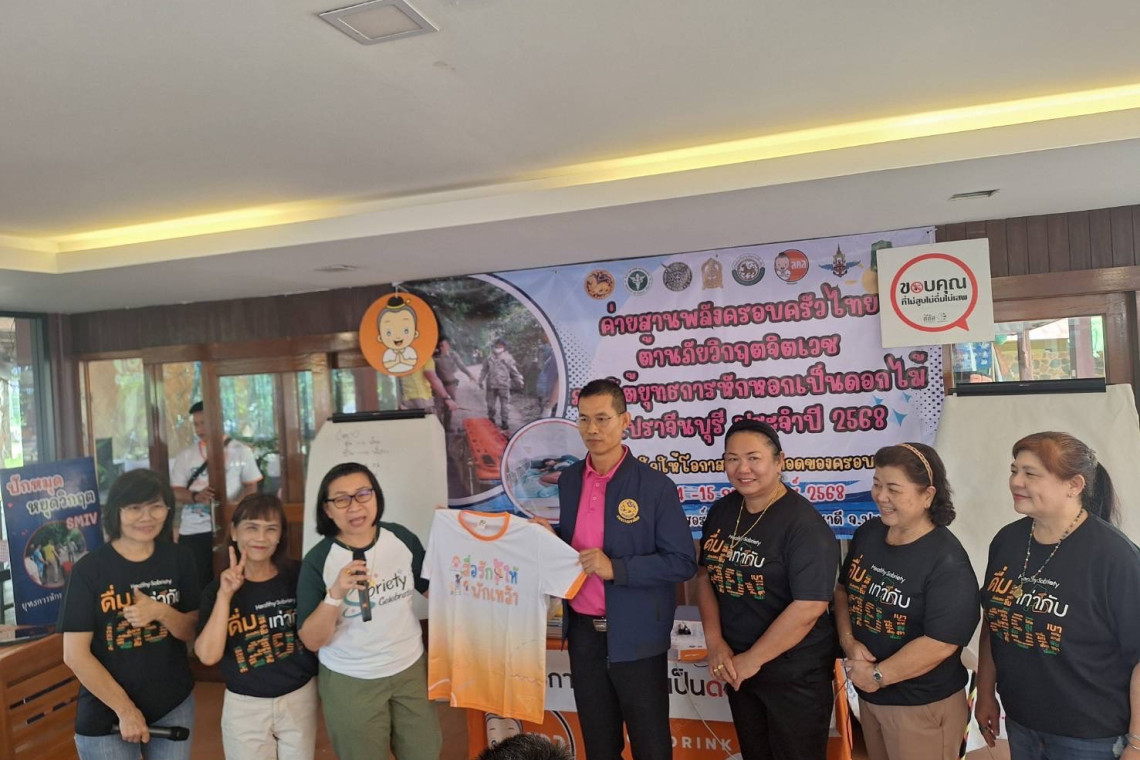 เมื่อเร็วๆนี้ เครือข่ายงดเหล้า ภายใต้ การสนับสนุนของสำนักงานกองทุนสนับสนุนการสร้างเสริมสุขภาพ (สสส.) ร่วมกับ สถานฟื้นฟูสมรรถภาพพลเมืองกองทัพบก มณฑลทหารบกที่ 12 จังหวัดปราจีนบุรี และโรงพยาบาล อำเภอนาดี จัดโครงการค่ายสานพลังครอบครัวไทยต้านภัยวิกฤตจิตเวช ภายใต้ยุทธการ “การหักหอกเป็นดอกไม้” ในกิจกรรม “ร้อยใจให้โอกาสในอ้อมกอดของครอบครัว” โดยมีนายสมใจ พุทธเสนา นายอำเภอนาดี เป็นประธาน ในกิจกรรม ณ วังตะพาบรีสอร์ท ตำบลสะพานหิน อำเภอนาดี จังหวัดปราจีนบุรี