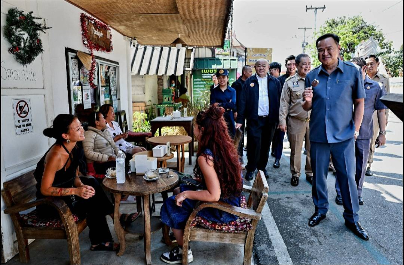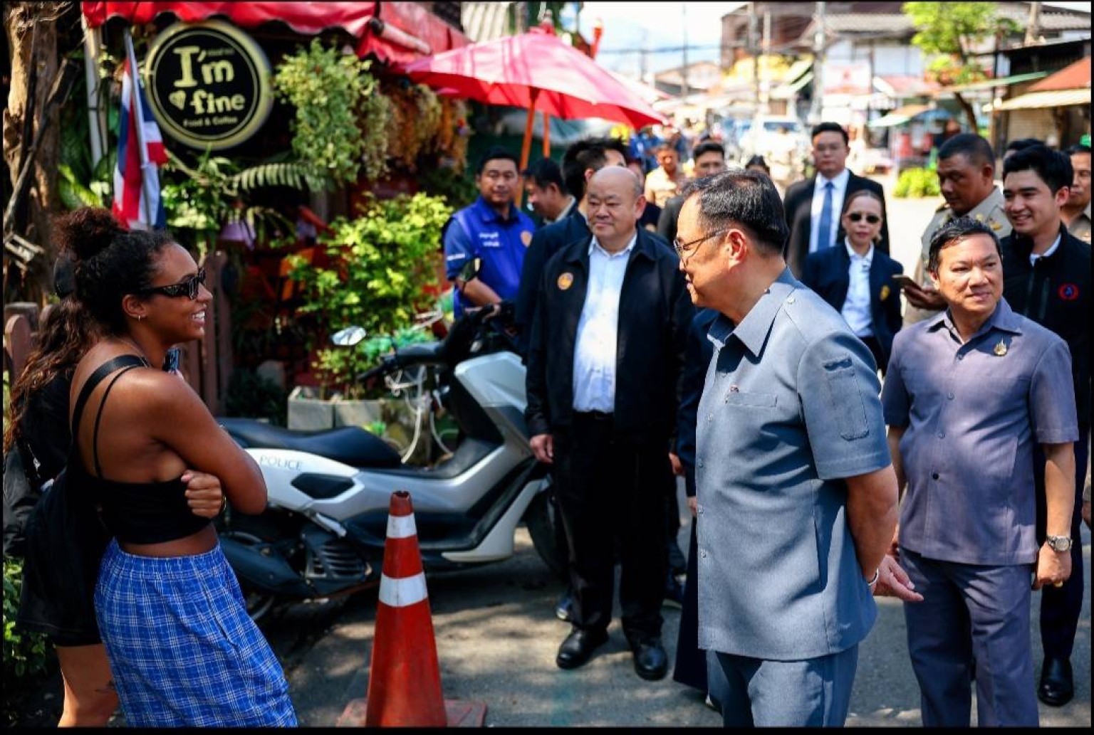 ขณะเดียวกันระหว่างทางเดินมีนักท่องเที่ยวชาวต่างชาติได้ทักทาย นายอนุทินก่อนถามว่า คุณเป็นใคร ซึ่งนายอนุทินได้แนะนำตัวก่อนจะเน้นย้ำกับนักท่องเที่ยวทุกคนที่เดินผ่านว่า ที่นี่ปลอดภัย และในประเทศไทยทุกพื้นที่ปลอดภัย ขอให้ท่องเที่ยวในประเทศไทยด้วยความสนุก
