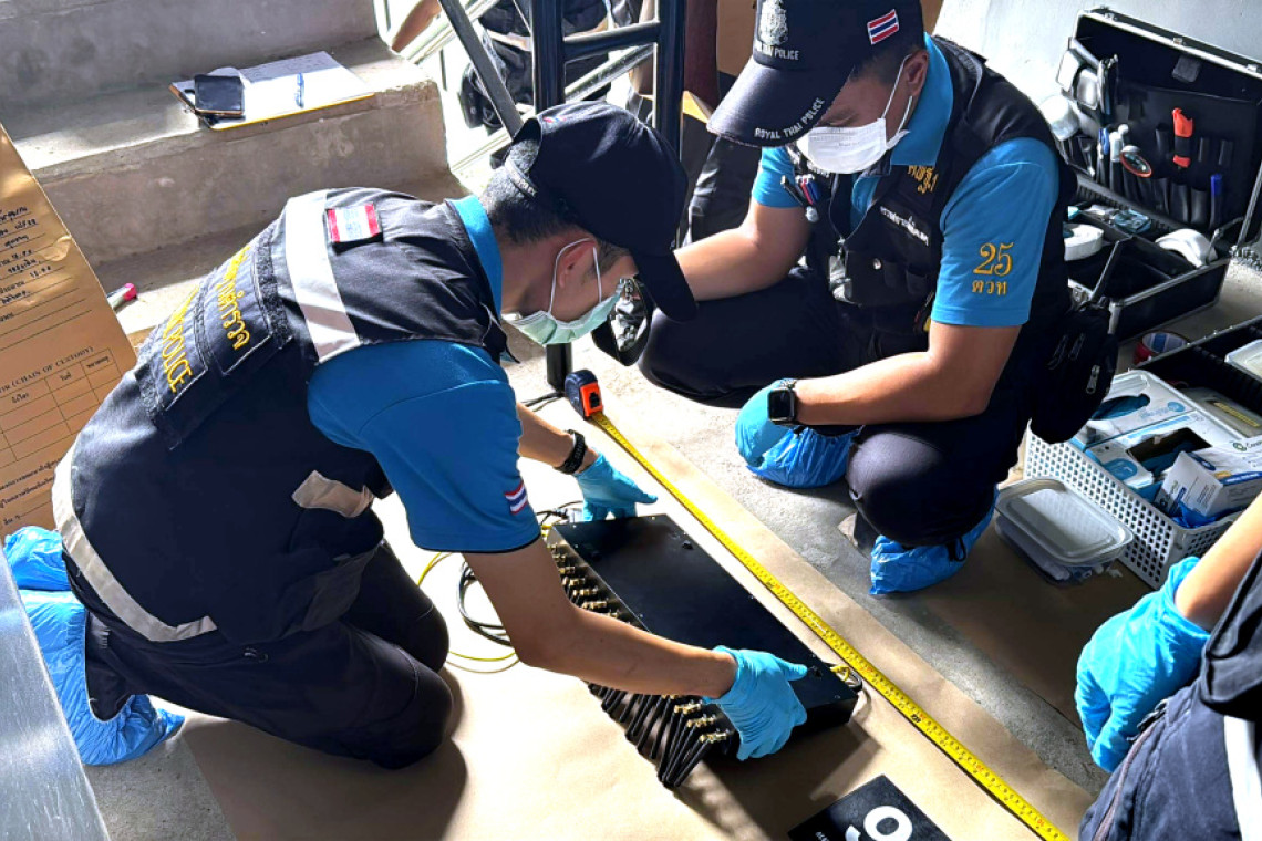 จากการตรวจค้นภายในห้องพัก พบเครื่องซิมบ็อกซ์ 3 เครื่อง 1 เครื่องสามารถใส่ซิมได้ 32 ซิม กล้องวงจรปิดใช้ดูความเคลื่อนไหว 1 ตัว ตำรวจพิสูจน์หลักฐานเข้าเก็บดีเอ็นเอ และลายนิ้วมือแฝงภายในห้อง