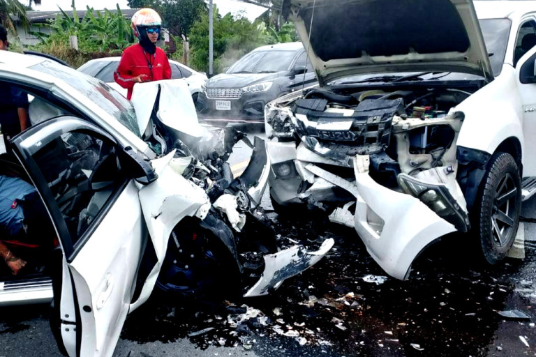 เมื่อเวลา 13.00 น.วันที่ 26 ก.พ.2568 ร.ต.ท.หญิง ชญานิศ ศรีโหมดสุข รอง สว.สอบสวน สภ.สามพราน จ.นครปฐม ได้รับแจ้งมีอุบัติเหตุรถยนต์ชนกันมีผู้เสียชีวิตและบาดเจ็บหลายรายติดอยู่ในรถ เหตุเกิดบริเวณถนนสายคลองใหม่ หมู่ที่ 2 ต.คลองใหม่ อ.สามพราน จ.นครปฐม จึงเดินทางไปตรวจสอบพร้อม รถกู้ชีพ รพ.สามพราน รถกู้ชีพ รพ.นครชัยศรี มูลนิธิสุขศาลานุเคราห์นครปฐม