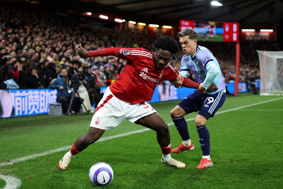 ที่สนาม ซิตี้ กราวนด์ ประเทศอังกฤษ ในการแข่งขันฟุตบอลพรีเมียร์ลีก ฤดูกาล 2024-2025 คืนวันที่ 26 ก.พ.68 ระหว่างทีม "น็อตติ้งแฮม ฟอเรสต์" พบกับทีม"อาร์เซน่อล" เริ่มเกมการแข่งขัน นาทีที่ 20 ฮัดสัน-โอดอย กระชากเข้าฝั่งขวาเขตโทษทิ้งตัวล้มฟ้องว่าโดน คาลาฟิออรี่ เข้าปะทะขอเอาฟาวล์ แต่ผู้ตัดสินมองว่าไม่มีอะไร