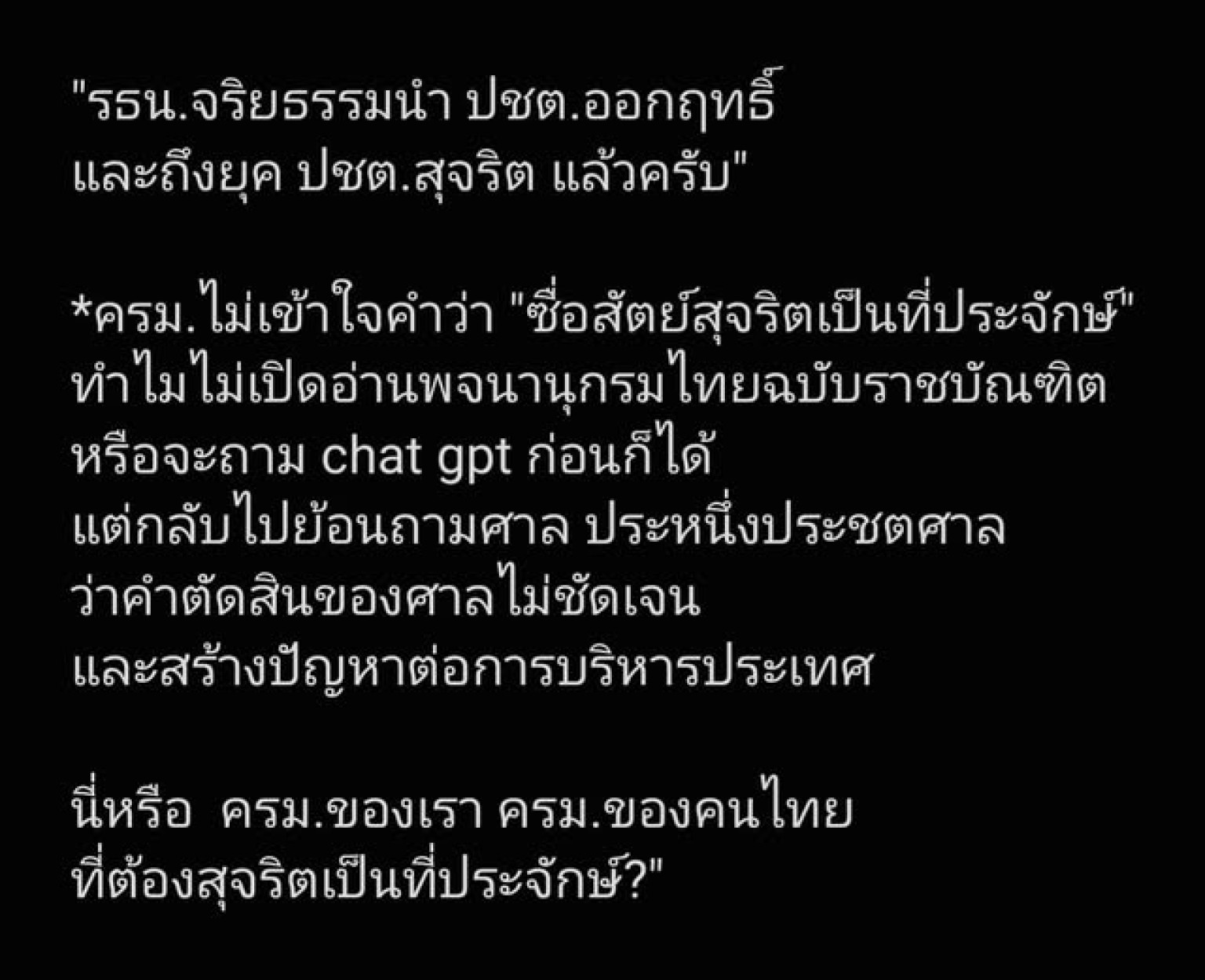27 กุมภาพันธ์ 2568 08:26 น. สยามรัฐออนไลน์ การเมือง วันที่ 27 ก.พ.68 ดร.ดิเรกฤทธิ์ เจนครองธรรม ประธานสถาบันสุจริตไทย และ อดีต สว. โพสต์ข้อความผ่านเฟซบุ๊ก ดร.ดิเรกฤทธิ์ เจนครองธรรม ประธานสถาบันสุจริตไทย ระบุว่า...