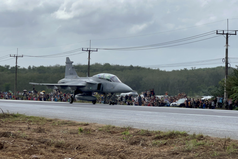 กองทัพอากาศ ทดสอบขีดความสามารถของเครื่องบินขับไล่ Gripen ขึ้นลงบนถนน ปชช.ในพื้นที่ให้ความสนใจอย่างมาก