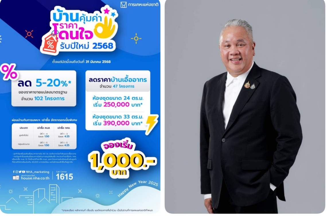 นายทวีพงษ์ วิชัยดิษฐ ผู้ว่าการการเคหะแห่งชาติ กล่าวว่า ในปี 2568 นี้ การเคหะแห่งชาติ ได้มอบของขวัญรับปีใหม่ 2568 ให้กับประชาชน ตามภารกิจหลักในการพัฒนาที่อยู่อาศัย เพื่อให้คนไทยทุกคนมีที่อยู่อาศัยเป็นของตนเอง พร้อมกับการยกระดับคุณภาพชีวิตของผู้อยู่อาศัย และตามนโยบาย 5x5 ฝ่าวิกฤตประชากร ที่มุ่งเน้นบ้านสำหรับคนทุกช่วงวัย ทุกกลุ่มเป้าหมายสามารถเข้าถึงได้ อยู่อย่างปลอดภัยและมีคุณภาพชีวิตที่ดี โดยจัดโปรโมชั่น “บ้านคุ้มค่า ราคาโดนใจ รับปีใหม่ 2568” ยกทัพโครงการที่อยู่อาศัยครอบคลุมทั้งโครงการในกรุงเทพฯ ปริมณฑล และภูมิภาค จำนวน 102 โครงการ