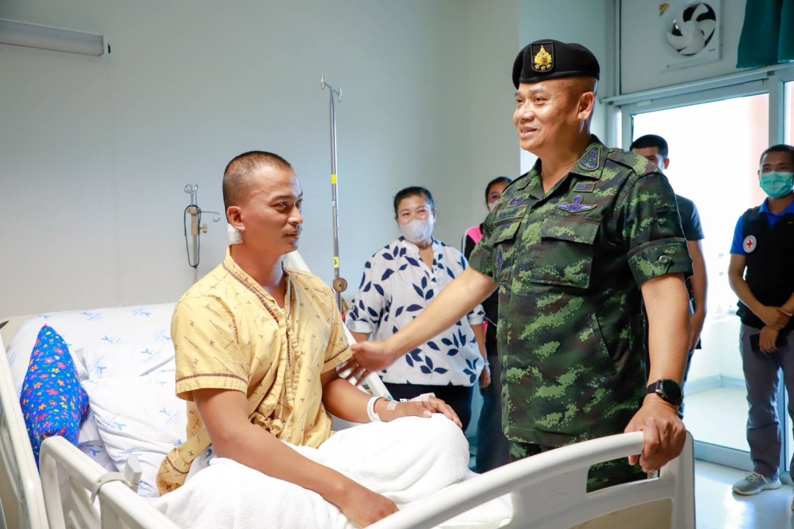 พร้อมกล่าวชื่นชมในความกล้าหาญ ทุ่มเทและเสียสละ และในนามของรัฐบาล ตลอดจนผู้บังคับบัญชาทุกคนขอนำความห่วงใยและความปรารถนาดี มาสู่ผู้บาดเจ็บและครอบครัว ยืนยันผู้บังคับบัญชาพร้อมให้ความช่วยเหลือดูแลอย่างเต็มขีดความสามารถ และพร้อมจะอำนวยความสะดวกเมื่อเกิดปัญหา ขอให้อาสาสมัครทหารพราน สิทธิพรฯ หายจากการเจ็บป่วยในเร็ววัน และขอให้รักษาสุขภาพ ร่างกายและจิตใจให้เข้มแข็งโดยเร็ว