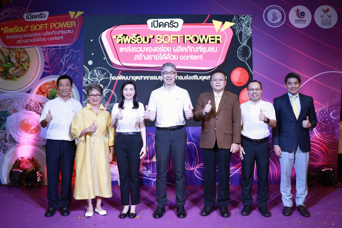 1 ซอฟต์พาวเวอร์) เพื่อสร้างแรงงานทักษะสูงด้วยการ Upskill - Reskill และยกระดับศักยภาพแรงงานด้านความคิดสร้างสรรค์ให้สูงขึ้น กระทรวงอุตสาหกรรม ภายใต้การนำของ นายเอกนัฏ พร้อมพันธุ์ รัฐมนตรีว่าการกระทรวงอุตสาหกรรม มีนโยบาย “ปฏิรูปอุตสาหกรรมไทยสู่เศรษฐกิจยุคใหม่” ที่มุ่งยกระดับศักยภาพของผู้ประกอบการให้มีความเข้มแข็ง พัฒนาระบบนิเวศในการดำเนินธุรกิจ และส่งเสริมการประกอบกิจการให้เป็นมิตรกับสิ่งแวดล้อม รวมถึงสนับสนุนการใช้ภูมิปัญญาและทุนทางวัฒนธรรมท้องถิ่น เพื่อยกระดับสินค้าทั้งด้านมาตรฐานและดีไซน์ให้ทันสมัย โดดเด่น แตกต่าง และตอบโจทย์ความต้องการของผู้บริโภค ซึ่งสอดรับกับการขับเคลื่อนซอฟต์พาวเวอร์ของรัฐบาล จึงเร่งผลักดันซอฟพาวเวอร์ในสาขาหลักที่ได้รับมอบหมายคือ แฟชั่นและอาหาร โดยเฉพาะสาขาอาหารซึ่งประเทศไทยได้รับขนานนามว่าเป็น ”ครัวของโลก” แต่การจะส่งเสริมให้อาหารไทยสามารถให้ก้าวเข้าสู่ระดับสากลอย่างแท้จริงต้องมีการสร้างแบรนด์ของอาหารไทยให้มีความเป็นสากลและสะท้อนถึงศาสตร์แห่งโภชนาการ สร้างมิติมุมมองในด้านวัฒนธรรมและมนต์เสน่ห์ความเป็นไทย โดยได้มอบหมายให้ กรมส่งเสริมอุตสาหกรรม หรือดีพร้อม (DIPROM) เข้าไปดำเนินงานผ่านโครงการ