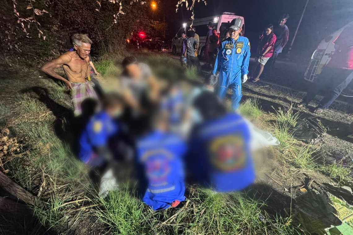 จุดเกิดเหตุอยู่บนถนนสายบ้านพังตรุ-หนองตายา หมู่ 5 ต.หนองตากยา พบว่าเจ้าหน้าที่อาสาสมัครกู้ชีพของมูลนิธิขุนรัตนาวุธ จุดรอรับเหตุ ต.บ้านใหม่ ส่วนหนึ่งกำลังใช้อุปกรณ์แสงสว่างเพื่อคอยทำหน้าที่เป็นผู้ช่วยเจ้าพนักงานตำรวจและแพทย์ในการชันสูตรพลิกศพ อีกส่วนหนึง กำลังยืนอำนวยความสะดวกในด้นการจราจร เนื่องจากเกรงว่า อาจจะเกิดอุบัติเหตุซ้ำซ้อนเกิดขึ้นได้ อุบัติเหตุครั้งนี้เป็นรถยนต์เก๋งโตโยต้าคัมรี่สีบรอนซ์ทอง หมายเลขทะเบียน 1 ขภ.3647 กรุงเทพมหานครฯ จอดอยู่ในสภาพด้านขวาหน้าและกระจกด้านหน้าแตกร้าว เนื่องจากชนกับรถจักรยานยนต์ยี่ห้อฮอนด้าเวฟสีน้ำเงิน หมายเลขทะเบียน พกท.211 กรุงเทพมหานครฯ ลากจูงรถสาลี่เข็นเศษต้นไม้ ซึ่งจอดอยู่ในสภาพล้มคว่ำกระเด็นตกข้างถนนในสภาพพังยับ ใกล้กันพบรถสาลี่บรรทุกต้นไม้จอดอยู่ ห่างออกไปพบร่างผู้เสียชีวิตเป็นนนหญิงสาวนอนหงายจมกองเลือดในสภาพอวัยวะตามร่างกายหักผิดรูป จากการสอบสวนเบื้องต้นทราบว่า หญิงสาวผู้ตายรายนี้ชื่อ นส.รสสุคนธ์(ขอสงวนนามสกุล)อายุ 50 ปี อยู่บ้านเลขที่ 107/6 หมู่ 5 ต.พังตรุ อ.ท่าม่วง จ.กาญจนบุรี ทราบจากผู้เห็นเหตุการณ์เล่าว่า ก่อนเกิดเหตุเห็นผู้ตายกำลังจูงรถจักรยานยนต์ทึ่ลากจูงรถสาลี่ข้ามถนน ถูกรถยนต์เก๋งวิ่งมาด้วยความเร็วสูงพุ่งชนทั้งอย่างแรงจนทั้งรถทั้งคนกระเด็นตกข้างทาง ซึ่งเจ้าหน้าที่จะได้ติดตามสอบสวนข้อเท็จจริงเพื่อดำเนินคดีตามกฎหมายกับคนขับรถยนต์เก๋งรายนี้ต่อไป
