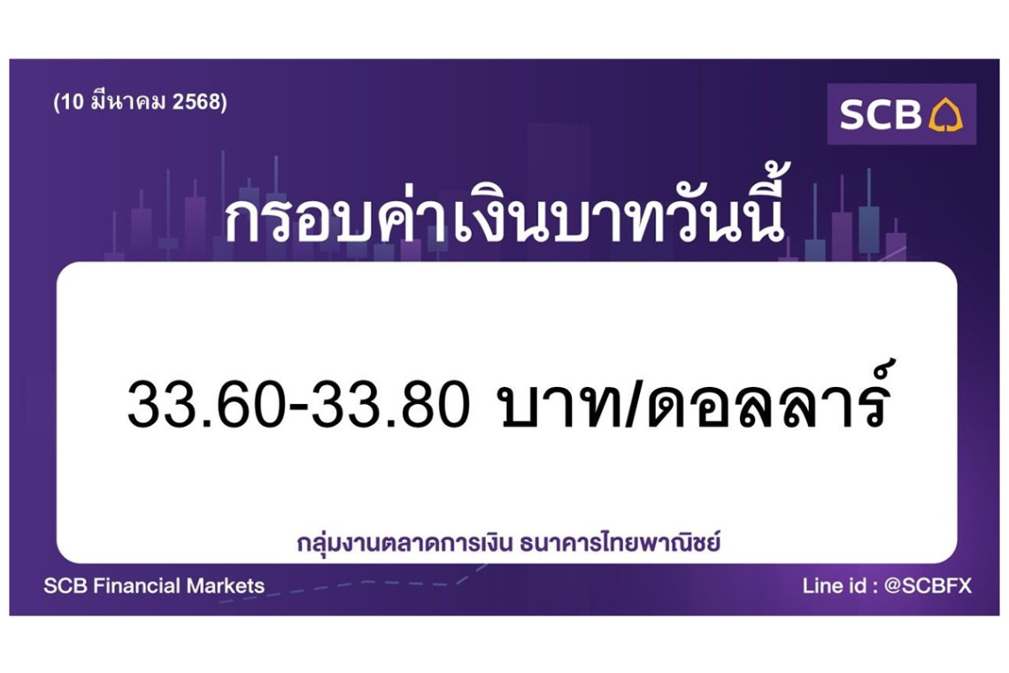 -กลุ่มงานตลาดการเงิน ธนาคารไทยพาณิชย์ ประเมินค่าเงินบาทวันนี้เคลื่อนไหวในกรอบ 33.60-33.80 บาท/ดอลลาร์