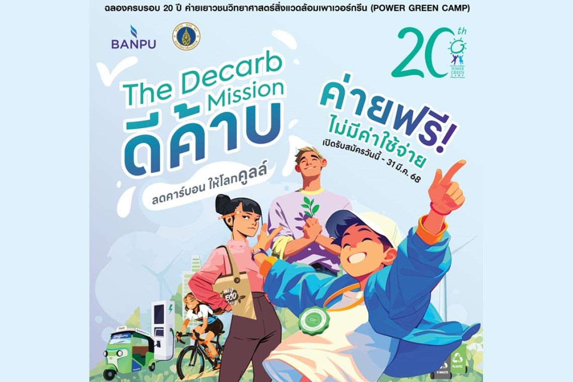 บริษัท บ้านปู จำกัด (มหาชน) ร่วมกับ คณะสิ่งแวดล้อมและทรัพยากรศาสตร์ มหาวิทยาลัยมหิดล อยากชวนนักเรียนชั้นมัธยมศึกษาปีที่ 4-6 ทั่วประเทศ (ไม่จำกัดแผนการเรียน) หรือระดับประกาศนียบัตรวิชาชีพ (ปวช.) ที่มีแพสชันในการอนุรักษ์สิ่งแวดล้อม และต้องการแสดงศักยภาพของคนรุ่นใหม่เพื่อร่วมสร้างสรรค์โลกให้คูลล์กว่าเดิม มาสมัครเข้าร่วม ค่ายเยาวชนวิทยาศาสตร์สิ่งแวดล้อม (Power Green Camp) ครั้งที่ 20 ซึ่งปีนี้จัดขึ้นภายใต้แนวคิด “ดีค้าบ – The Decarb Mission” ลดคาร์บอน ให้โลกคูลล์ เพื่อสร้างความรู้และความเข้าใจเกี่ยวกับการลดการปล่อยก๊าซคาร์บอนไดออกไซด์ (Decarbonization) และการนำเอาวิทยาศาสตร์และเทคโนโลยีไปช่วยแก้ไขปัญหาสิ่งแวดล้อมอย่างยั่งยืน
