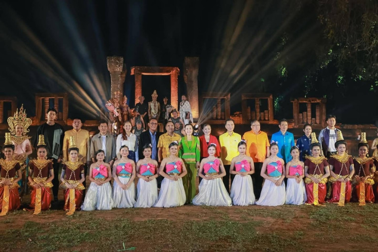 เมื่อช่วงหัวค่ำวันที่ 9 มี.ค.68 ที่โบราณสถานปราสาทเมืองแขก ต.โคราช อ.สูงเนิน จ.นครราชสีมา นางยลดา หวังศุภกิจโกศล นายก อบจ.นครราชสีมา พร้อมร้อยโทอนุชา ตั้งพาณิชย์ นายอำเภอสูงเนิน นายรักชาติ กิริวัฒนศักดิ์ สมาชิกสภาองค์การบริการส่วนจังหวัด (ส.อบจ.) นครราชสีมา เขต อ.สูงเนิน ในฐานะประธานสภาวัฒนาธรรม อ.สูงเนิน และคณะผู้บริหาร อบจ. ฯ ส.อบจ. หัวหน้าส่วนราชการ ผู้บริหารองค์กรปกครองส่วนท้องถิ่น (อปท.) ผู้นำชุมชนและชาวสูงเนิน ร่วมเปิดงาน “ประเพณีกินเข่าค่ำ ของดีเมืองสูงเนิน ประจำปี 2568” กำหนดจัดระหว่างวันที่ 7-9 มีนาคม ท่ามกลางประชาชนและนักท่องเที่ยวหลายพันคนร่วมสัมผัสบรรยากาศย้อนยุคดินแดนแห่งอารยธรรม ศิลปะทวารวดี สืบสานประเพณีนั่งล้อมวงรับประทานอาหารเย็นแบบพื้นถิ่นอนุรักษ์ศิลปวัฒนธรรมพื้นบ้าน “กินเข่าค่ำ”