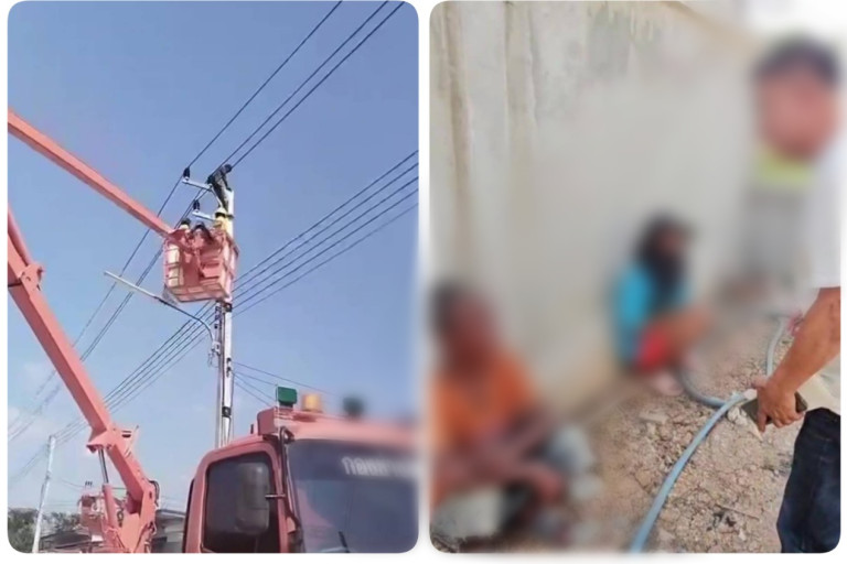 คนงานก่อสร้างเครียด ค่าแรงไม่ออกไม่มีเงินรักษาลูกป่วยจิตเวชปีนเสาไฟฟ้าแรงสูงในโครงการ