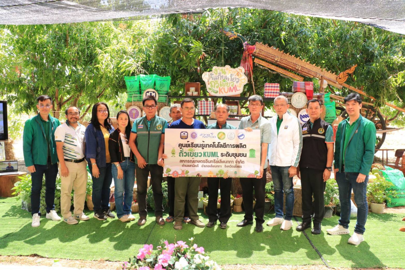 รวมถึงเครือข่ายเกษตรกรผู้ปลูกถั่วเขียว 2. พัฒนาพื้นที่ต้นแบบการเรียนรู้การผลิตถั่วเขียวอินทรีย์ในระดับชุมชน เป้าหมายประกอบด้วย กลุ่มเกษตรกรผู้ปลูกถั่วเขียว KUML เจ้าหน้าที่จากหน่วยงานต่างๆ ได้แก่ ธ.ก.ส. กรมส่งเสริมการเกษตร สวทช. คณะอาจารย์จากมหาวิทยาลัยเกษตรศาสตร์ วิทยาเขตกำแพงแสน และบริษัทเอกชนผู้รับซื้อผลผลิตถั่วเขียวพันธุ์ KUML และหน่วยงานอื่นๆ รวม 230 ราย และกิจกรรมในวันนี้ประกอบด้วย การมอบป้ายศูนย์เรียนรู้เทคโนโลยีการผลิตถั่วเขียว KUML ระดับชุมชน ให้กับกลุ่มเกษตรกร การเสวนา “กว่าจะเป็นศูนย์เรียนรู้การผลิตถั่วเขียว KUML” การประกวดผลผลิตถั่วเขียว KUML การจัดนิทรรศการ และลงแขกเก็บเมล็ดพันธุ์ถั่วเขียว KUML ด้วยมือ