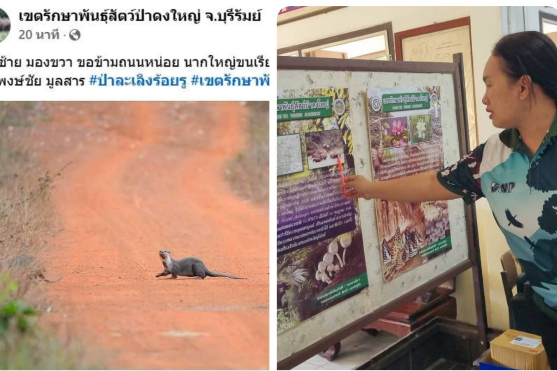 บุรีรัมย์ ชมความน่ารักของ "นากใหญ่ขนเรียบ" สัตว์หายากใกล้สูญพันธุ์ โผล่กลางถนน "ป่าดงใหญ่"