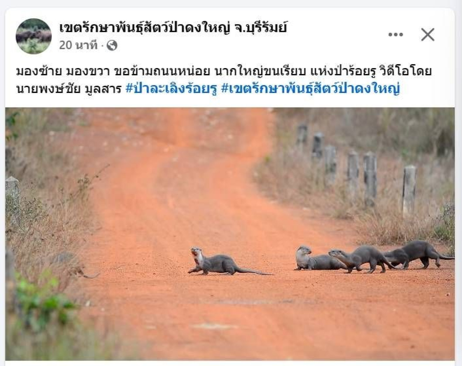 เฟชบุ๊กเขตรักษาพันธุ์สัตว์ป่าดงใหญ่ โพสต์คลิปภาพพร้อมข้อความว่า "มองซ้าย มองขวา ขอข้ามถนนหน่อย นากใหญ่ขนเรียบ แห่งป่าร้อยรู วิดีโอโดย นายพงษ์ชัย มูลสาร #ป่าละเลิงร้อยรู #เขตรักษาพันธุ์สัตว์ป่าดงใหญ่" จากนั้นทีมข่าวได้ลงพื้นที่ไปยังเขตรักษาพันธุ์สัตว์ป่าดงใหญ่ อ.โนนดินแดง จ.บุรีรัมย์