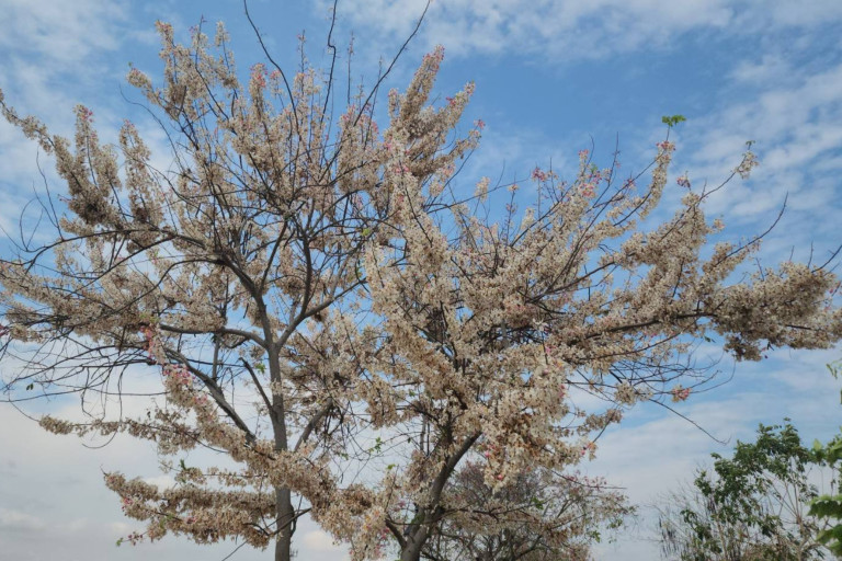 “กัลปพฤกษ์” ไม้มงคล จ.บุรีรัมย์ ออกดอกสีขาว-แดง-ชมพูบานสะพรั่ง รับลมร้อน รอบคูเมืองโบราณ