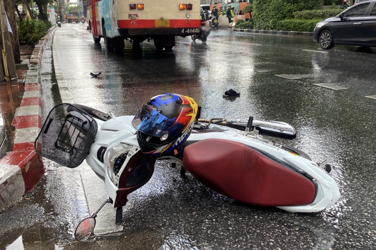 วันที่ 13 มี.ค.68 ที่ สน.บางนาร.ต.อ.สุนทร ชูช่วย รอง สว.สอบสวน สน.บางนา รับแจ้งอุบัติเหตุ รถประจำทางเฉี่ยวชนรถจักรยานยนต์มีผู้เสียชีวิตบริเวณปากซอย สุขุมวิท 101/2 ถนนสุขุมวิท แขวงบางจาก เขตพระโขนง จึงรุดไปตรวจสอบที่เกิดเหตุพร้อมแพทย์นิติเวชโรงพยาบาลจุฬาฯ และเจ้าหน้าที่อาสามูลนิธิร่วมกตัญญู