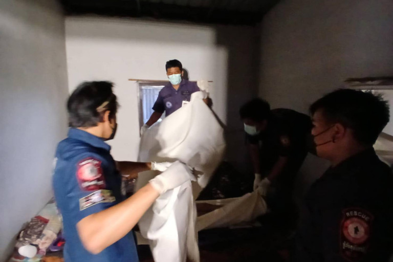 ล่าสุดสามีได้มีอาการหึงหวงตนเองมาตลอด และก็เกิดการโต้เถียงกันอยู่บ่อยครั้ง อีกทั้งผู้ตายก็ชอบดื่มเหล้าเป็นประจำ คาดจนทำให้เกิดความเครียด จนกระทั่งวันนี้ ช่วงบ่ายโมง ตนเองกลับมาจากที่ทำงานจากอบต.ตนเองได้ให้ลูกไปเคาะประตูเรียกสามี เพื่อจะให้มากินข้าว แต่ไม่สามารถเปิดประตูเข้าไปได้ จึงได้นำกุญแจไปไขที่ประตู ปรากฏเห็นสามียิงตัวเองเสียชีวิตแล้ว ในสภาพผู้ตายคลุมโปงอยู่ภายในห้อง ทั้งนี้คาดว่าสามีผู้ตาย น่าจะก่อเหตุตั้งแต่ช่วงคืนที่ผ่านมา แต่ไม่มีคนมาพบเห็น จนกระทั่งช่วง 13:00 กว่าๆ ตนเองและลูกมาเจอสภาพศพของสามีดังกล่าว