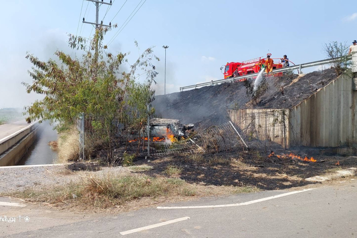วันที่ 15 มี.ค.68 วลา 14.14 น.ผู้สื่อข่าวรายงานว่า ร.ต.ท.พัฒนศักดิ์ เปรมปรีดิ์ รองสารวัตรสอบสวน สภ.ลูกแก จ.กาญจนบุรี ได้รับแจ้งจากศูนย์วิทยุของมูลนิธิขุนรัตนาวุธ อำเภอท่าม่วง จังหวัดกาญจนบุรี ว่าเกิดอุบัติเหตุรถยนต์เก๋งซึ่งวิ่งอยู่บนทางด่วนมอเตอร์เวย์ M81โครงการบางใหญ่-กาญจนบุรี หลัก กม.ที่ 68+400 หมู่ที่ 7 ต.สนามแย้ อ.ท่ามะกา จ.กาญจนบุรี แล้วตกลงมาที่พื้นไฟลุกไหม้ทั้งคัน มีผู้ได้รับบาดเจ็บ 1 รายอาการเล็กน้อย หลังทราบเรื่องจึงรายงานให้ พ.ต.อ. รัชพล กิตติคุณชนก ผกก.สภ.ลูกแกทราบเรื่อง