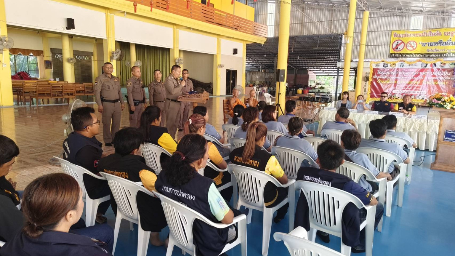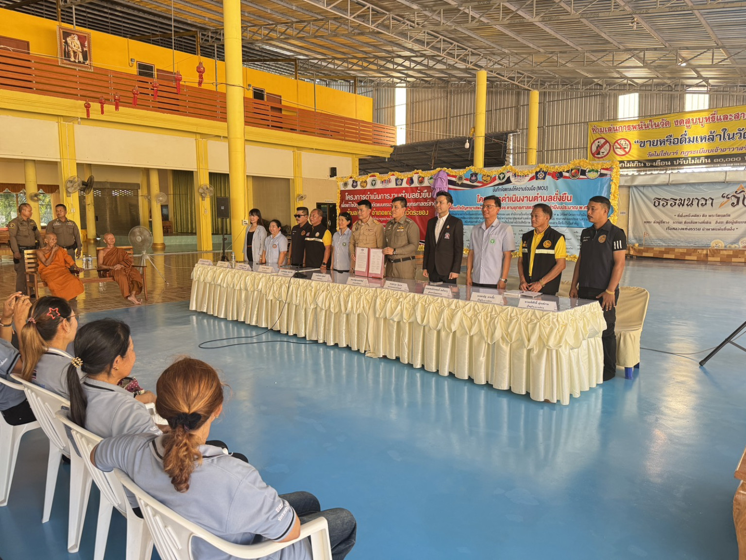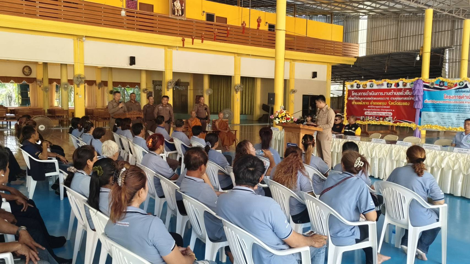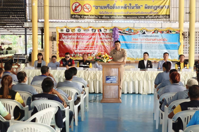 ผู้สื่อข่าวรายงาน ว่า นายกันตภณ สุขสงค์ นายอำเภอแกลง ให้เกียรติเป็นประธานเปิดงานและร่วมลงนามบันทึกข้อตกลงโครงการตำบลยั่งยืน แก้ไขปัญหายาเสพติดตามยุทธศาสตร์ชาติ ประจำปี 2568 ณ วัดท่ามะกอก ม.7 ต.พังราด อ.แกลง จ.ระยอง โดยมี พ.ต.อ.พิมุข นาคขำพันธ์ ผกก.สภ.ปากน้ำประแสร์ นายสราวุธ ชินราช ประธาน กต.ตร.สภ.ปากน้ำประแสร์ นางประชิด ชินราช ประธานพัฒนาสตรีจังหวัดระยอง หัวหน้าส่วนราชการ เจ้าหน้าที่สาธารณสุข ผู้นำท้องถิ่น กำนัน ผู้ใหญ่บ้าน และหน่วยงานที่เกี่ยวข้อง เข้าร่วมงานอย่างพร้อมเพรียง