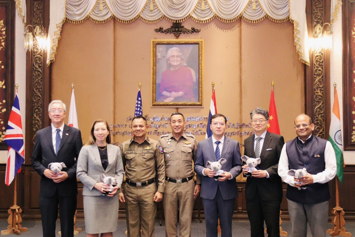 ,Ms.Zhang Yaijing กงสุลใหญ่สาธารณรัฐประชาชนจีนฯ, Mr.Harada Masaru กงสุลใหญ่ญี่ปุ่นฯ,Ms.Lisa A. Buzenas กงสุลใหญ่สหรัฐอเมริกาฯ,Mr.Pranav Ganesh กงสุลอินเดียฯ,Mr.Ben Svasti Thomson กงสุลกิติมศักดิ์อังกฤษฯ