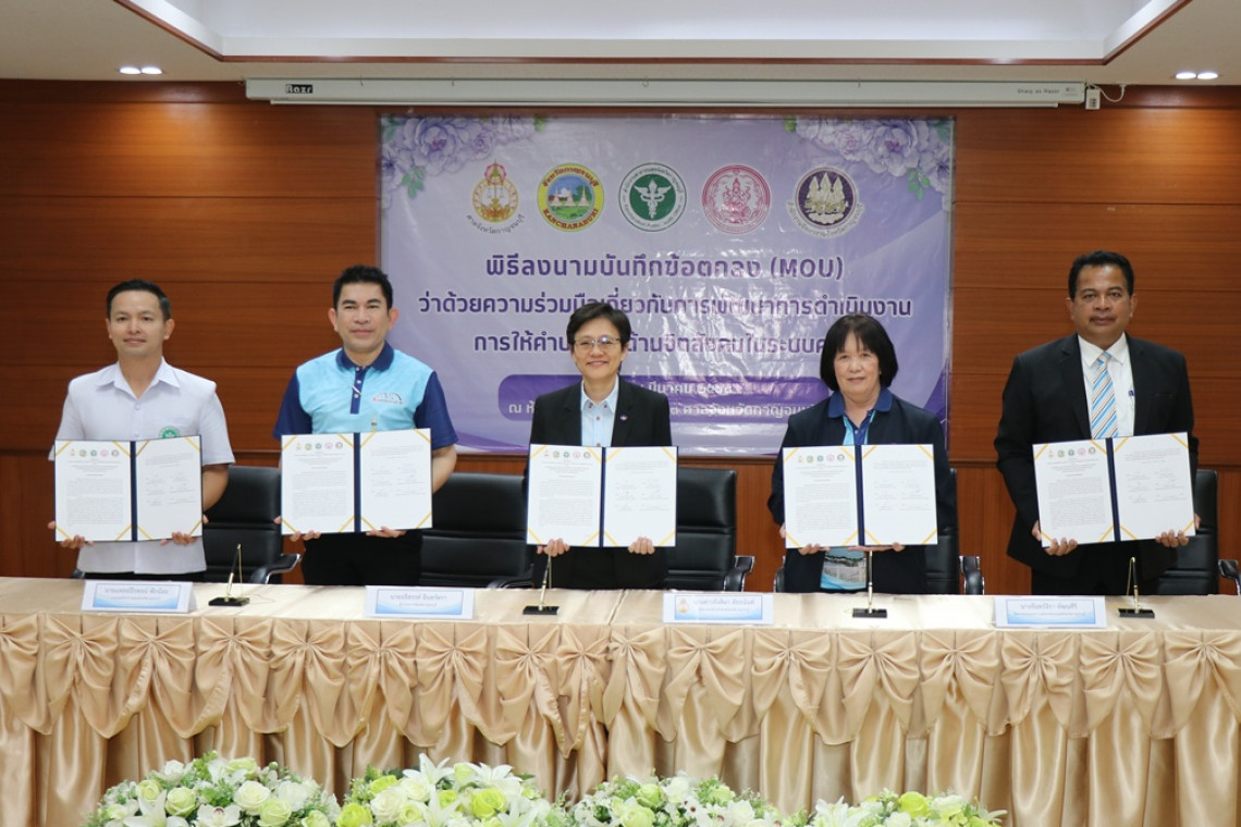 ศาลจังหวัดกาญจนบุรี จัดพิธีลงนามบันทึกข้อตกลงว่าด้วยความร่วมมือเกี่ยวกับการพัฒนาการดำเนินงานการให้คำปรึกษาด้านจิตสังคมในระบบศาล(MOU)ร่วมระหว่างศาลจังหวัดกาญจนบุรี กับจังหวัดกาญจนบุรี สำนักงานสาธารณสุขจังหวัดกาญจนบุรี สำนักงานพัฒนาสังคมและความมั่นคงของมนุษย์จังหวัดกาญจนบุรี และสำนักงานจัดหางานจังหวัดกาญจนบุรี เพื่อส่งเสริมและประสานความร่วมมือกันระหว่างหน่วยงานในการดำเนินงานเพื่อพัฒนาการให้คำปรึกษาด้านจิตสังคมในระบบศาล