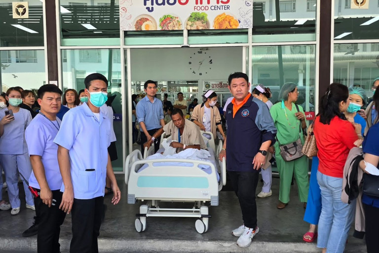 ผู้สื่อข่าวรายงานว่า วันที่28มีนาคม 2568 ที่โรงพยาบาลวิชัยเวชอิยเตอร์เนชั่นแนล อ้อมน้อย จังหวัดสมุทรสาคร หลังจากที่เกิดเหตุแผ่นดินไหวขึ้นเมื่อเวลาประมาณ 13:20 น. นายศรัณย์ ขวัญเมือง อดีต สจ. สมุทรสาคร พร้อมด้วยทีมงานพัฒนาอ้อมน้อย หลายสิบคน ได้ลงพื้นที่เข้าช่วยเหลือคนป่วย พร้อมช่วยกันขนย้ายคนป่วยจำนวนมากลงจากตึกสูง และได้เร่งช่วยกันเข็นรถเข็น และเตียงที่ยังห้อยสายน้ำเกลือพร้อมกับคนไข้ลงจากห้องคนไข้ที่อยู่บนตึกสูงของทางโรงพยาบาลซึ่ง บรรยากาศเป็นไปอย่างจ้าละหวั่นทั้งญาติคนไข้ และคนไข้ รวมถึงหมอ พยาบาล ต่างตกใจกลัวกับเหตุแผ่นดินไหวที่เกิดขึ้น