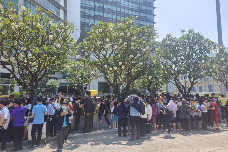 วันที่ 28 มีนาคม 2568 นายอนุกูล ปีดแก้ว ปลัดกระทรวงการพัฒนาสังคมและความมั่นคงของมนุษย์ (ปลัด พม.) พร้อมด้วยนายนิกร จำนง ประธานคณะที่ปรึกษาติดตามและเร่งรัดการขับเคลื่อนนโยบายรัฐมนตรีว่าการกระทรวงการพัฒนาสังคมและความมั่นคงของมนุษย์ และ ศ.ดร.กนก วงษ์ตระหง่าน รองประธานคณะที่ปรึกษาติดตามและเร่งรัดการขับเคลื่อนนโยบายรัฐมนตรีว่าการกระทรวงการพัฒนาสังคมและความมั่นคงของมนุษย์ ได้นำข้าราชการและเจ้าหน้าที่กระทรวง พม. อพยพในขณะที่เกิดเหตุแผ่นดินไหวอย่างรุนแรงจนกระทั่งตึกของกระทรวง พม. ทั้ง 2 ตึก ประกอบด้วยอาคาร 9 ชั้น และอาคารสูง 19 ชั้น สั่นสะเทือนอย่างรุนแรงจนกระทั่งทุกคนรู้สึกได้ โดยได้รีบอพยพทางบันไดหนีไฟลงมาข้างล่าง เพื่อมารวมตัวที่จุดรวมพลบริเวณหน้าอาคาร 9 ชั้น ก่อนที่นายอนุกูลกล่าวผ่านโทรโข่งกับบรรดาข้าราชการและเจ้าหน้าที่ พม. ว่า ขอให้ตรวจสอบบุคลากรและแจ้งให้ผู้บังคับบัญชาทราบ จะได้ยืนยันได้ว่าบุคลากรของเราปลอดภัยทุกคน และขอให้ทุกคนอย่ารีบกลับเข้าไปในตัวอาคาร โดยขอให้เจ้าหน้าที่รักษาความปลอดภัยได้เข้าไปตรวจสอบความเรียบร้อยก่อน เพราะอาจจะเกิดอาฟเตอร์ช็อกตามมาได้ ซึ่งขณะนี้ไม่สามารถรับประกันความปลอดภัยได้ ต้องรอเวลาให้เหตุการณ์สงบก่อน จึงอนุญาตให้ข้าราชการและเจ้าหน้าที่ พม. ทยอยขึ้นไปเก็บสิ่งของสำคัญ และ อนุญาตให้เดินทางกลับบ้านทันที นอกจากนี้ขอให้บุคลากรของกระทรวง พม. ทุกคนติดตามข้อมูลข่าวสารเกี่ยวกับสถานการณ์แผ่นดินไหวอย่างใกล้ชิด เพื่อจะได้แจ้งเตือนและดูแลบุคคลในครอบครัวของตนเองได้อย่างปลอดภัย