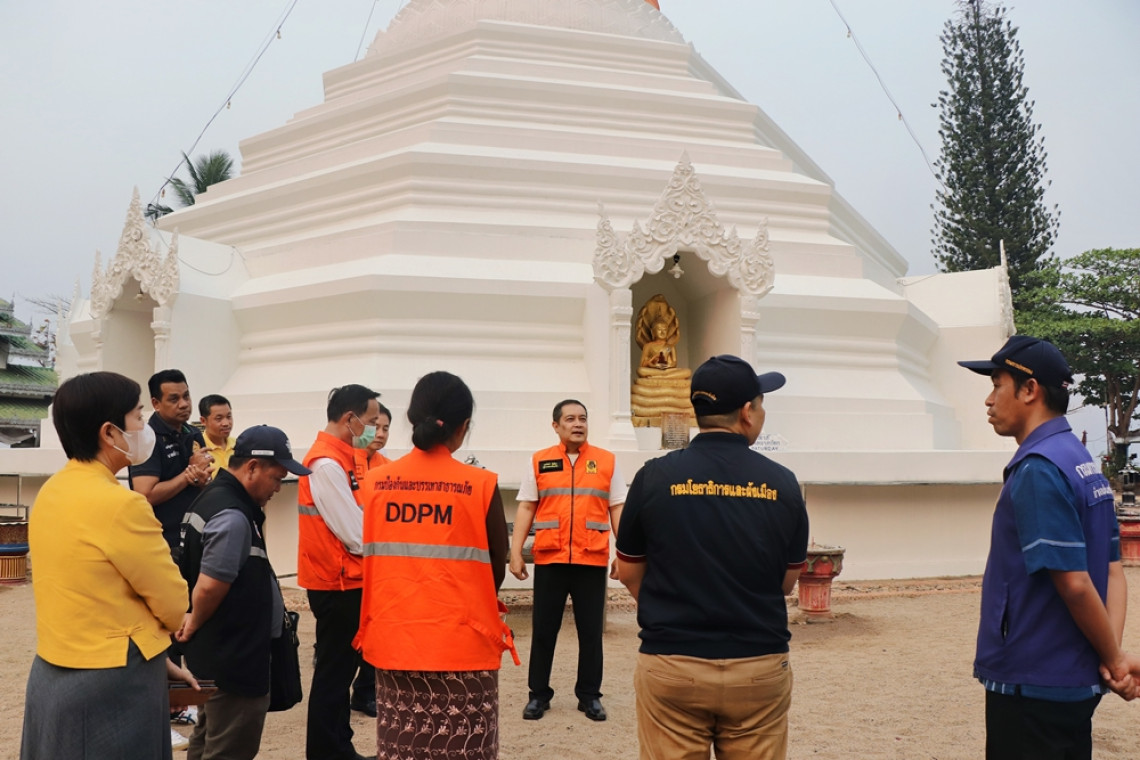 นายเอกวิทย์ มีเพียร ผู้ว่าราชการจังหวัดแม่ฮ่องสอน เปิดเผยว่า ตนพร้อมด้วย นายบุญลือ ธรรมธรานุรักษ์ รองผู้ว่าราชการจังหวัดแม่ฮ่องสอน นางสาวมัลลิกา จีนาคำ นายกเทศมนตรีเมืองแม่ฮ่องสอน หัวหน้าส่วนราชการ และหน่วยงานที่เกี่ยวข้อง ได้ลงพื้นที่สำรวจผลกระทบและความเสียหายที่เกิดจากแผ่นดินไหวในสถานที่สำคัญของตัวอำเภอเมืองแม่ฮ่องสอน ประกอบด้วย โรงพยาบาลศรีสังวาลย์ ซึ่งเป็นสถานที่ที่มีตึกสูง และมีผู้คนเข้ามารับการรักษาเป็นจำนวนมาก รวมทั้งเจ้าหน้าที่ที่ปฏิบัติงานของโรงพยาบาลอีกด้วย วัดพระธาตุดอยกองมู ซึ่งเป็นสถานที่ที่สำคัญของจังหวัดแม่ฮ่องสอน ทั้งในด้านวัฒนธรรม สิ่งปลูกสร้างที่มีอายุเก่าแก่ และเป็นหนึ่งในสถานที่ที่สำคัญในด้านการท่องเที่ยวของจังหวัดแม่ฮ่องสอน