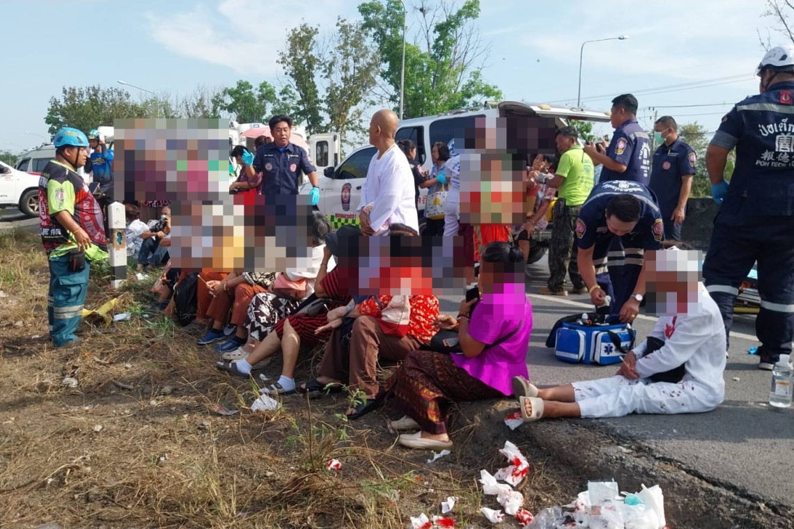 จากการสอบถาม นางสาววรรณา อายุ 66 ปี ชาวกรุงเทพ กล่าวว่า ตนพร้อมคณะเดินทางจากกรุงเทพฯจะไปทำบุญ ที่สำนักสงฆ์ ย่าน อ.ลาดบัวหลวง จ.พระนครศรีอยุธยา มาถึงที่เกิดเหตุขณะนั้นตอนหลับอยู่สะดุ้ง ตื่นอีกทีรู้สึกว่ารถเสียหลักตกลงไปริมถนน ตนเองและคนที่รับบาดเจ็บ จากนั้นได้ตีเจ้าหน้าที่เข้ามาช่วยนำลงจากรถ ส่วนสาเหตุ ยังไม่แน่ใจว่าเกิดจากอะไร