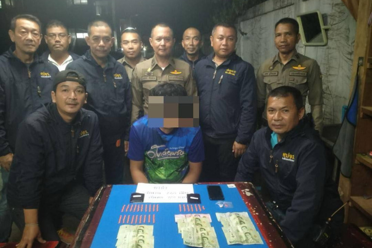 สังเกตเห็นชายหนุ่มรายนี้มีท่าทางผิดปกติมีกระเป๋าสะพายอาการพิรุธจึงแสดงตัวเพื่อขอตรวจค้นถึงกับหน้าซีดเผือด เมื่อค้นในกระเป๋าพบยาบ้าจำนวน 260 เม็ด เงินสด 720 บาท ส่วนหญิงสาวที่นั่งอยู่ด้วยซึ่งไม่รู้อิโหน่อิเหน่ด้วยถึงกับตกตะลึง เบื้องต้นพบว่าชายหนุ่มรายนี้คือนายพีรพัฒน์ อายุ 24 ปี ชาวหมู่ 1 ตำบลปากพูน เจ้าหน้าที่จึงคุมตัวพร้อมของกลาง