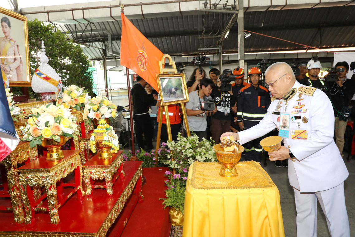 วันที่ 6 เมษายน 2568 ที่บริเวณพื้นที่ก่อสร้างตึก สำนักงานการตรวจเงินแผ่นดิน เขตจตุจักร สมเด็จพระเจ้าลูกเธอ เจ้าฟ้าสิริวัณณวรี นารีรัตนราชกัญญา โปรดให้ พลเอก ศิวะ ภระมรทัต (อ่านว่า พะ-ละ-มอน-ทัด) กรมวังผู้ใหญ่ วังศุโขทัย เชิญเงินพระราชทาน จำนวน 200,000 บาท ไปมอบให้กับเจ้าหน้าที่ เพื่อเป็นค่าใช้จ่ายในการรักษาพยาบาลสุนัข และซื้ออาหารให้กับสุนัข "เค-ไนน์" (K9) ที่มาปฏิบัติหน้าที่ในการค้นหา ผู้บาดเจ็บ และผู้เสียชีวิตในซากตึกสำนักงานการตรวจเงินแผ่นดิน เขตจตุจักร รวมทั้งเพื่อเป็นขวัญกำลังใจแก่เจ้าหน้าที่ การได้รับพระกรุณาในครั้งนี้ ยังความปลื้มปีติและสำนึกในพระกรุณาธิคุณเป็นล้นพ้น