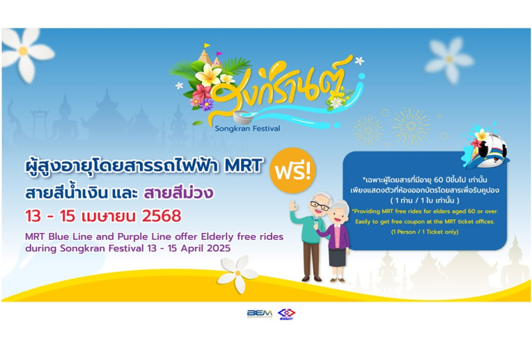 สงกรานต์! คนไทยสูงอายุ 60 ปีขึ้นไป ใช้ฟรีรถไฟฟ้า MRT 4 สายวันที่ 13 – 15 เมษายน 2568