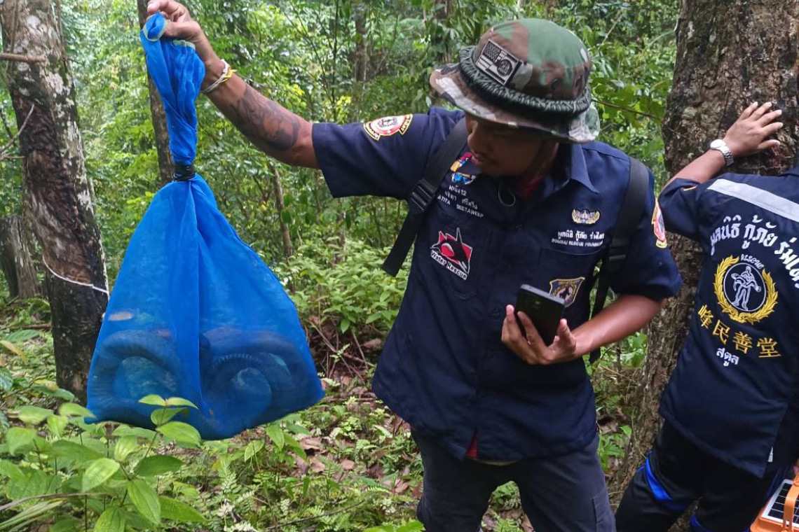 หมองูชื่อดัง บังยาบองหลาคิงค์ จับงูจงอางยักษ์คู่ผัวเมียพร้อมไข่ 29 ฟอง ช่วยชาวสวนยางสตูล