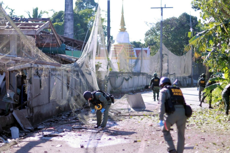 เมื่อเวลา 06.40 น. วันที่ 13 เม.ย.68 ผู้สื่อข่าวรายงานว่า ได้เกิดเหตุระเบิดขึ้น บริเวณข้างกำแพงวัด ติดกับโรงนอนของเจ้าหน้าที่หน่วยเฉพาะกิจทหารพรานที่ 4503 (บ้านน๊อคดาวน์) ตั้งอยู่ข้างกำเเพงวัดชัยรัตนาราม (วัดบ้านไทย) ถนนข้างวัด ทางไปบูโล๊ะกาเด็ง ไปบือเเนซีนา ต.ตันหยงมัสอ.ระเเงะ จ.นราธิวาส โดย แรงระเบิดทำให้เจ้าหน้าที่ทหารพรานได้รับบาดเจ็บ 4 นาย คือ 1.อส.ทพ.อายือมิง ดือเระ โดนสะเก็ดบริเวณหลังซ้าย 2.อส.ทพ.มะซับรี มะสาและ มีอาการแน่นหน้าอกแล้วก็เจ็บซี่โครงข้างซ้าย 3.อส.ทพ.เศษฐศาสตร์ ผกามาศ แน่นหน้าอก และ4.อส.ทพ.จักรณรงค์ คงนวน แน่นหน้าอก โดยทั้ง 4 นาย เจ้าหน้าที่ได้ส่งไปรักษาตัวยังโรงพยาบาลระแงะ จ.นราธิวาส อาการปลอดภัย