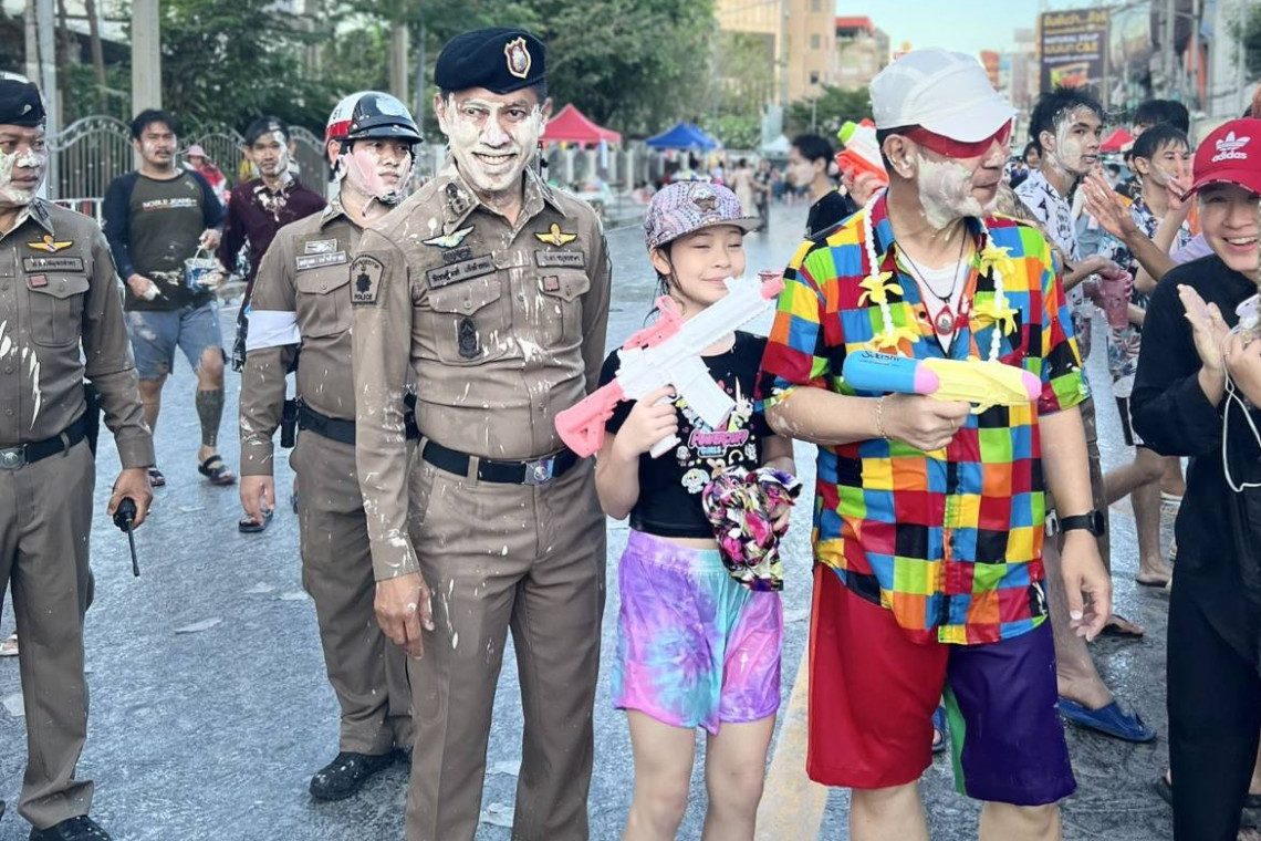 ทางด้านนักท่องเที่ยวต่างมารุมล้อมสาดน้ำปะแป้งผู้ว่าฯ ผู้กำกับและเจ้าหน้าที่ตำรวจ กัน จนหน้าขาววอกเต็มไปด้วยแป้งจำกันแทบไม่ได้ โดยนักท่องเที่ยวต่างประทับใจ สนุกสนานในความเป็นกันเองแบบไม่ถือตัวของผู้ว่าฯและเจ้าหน้าที่ตำรวจและอยากจะให้จัดแบบนี้ทุกปีด้วย