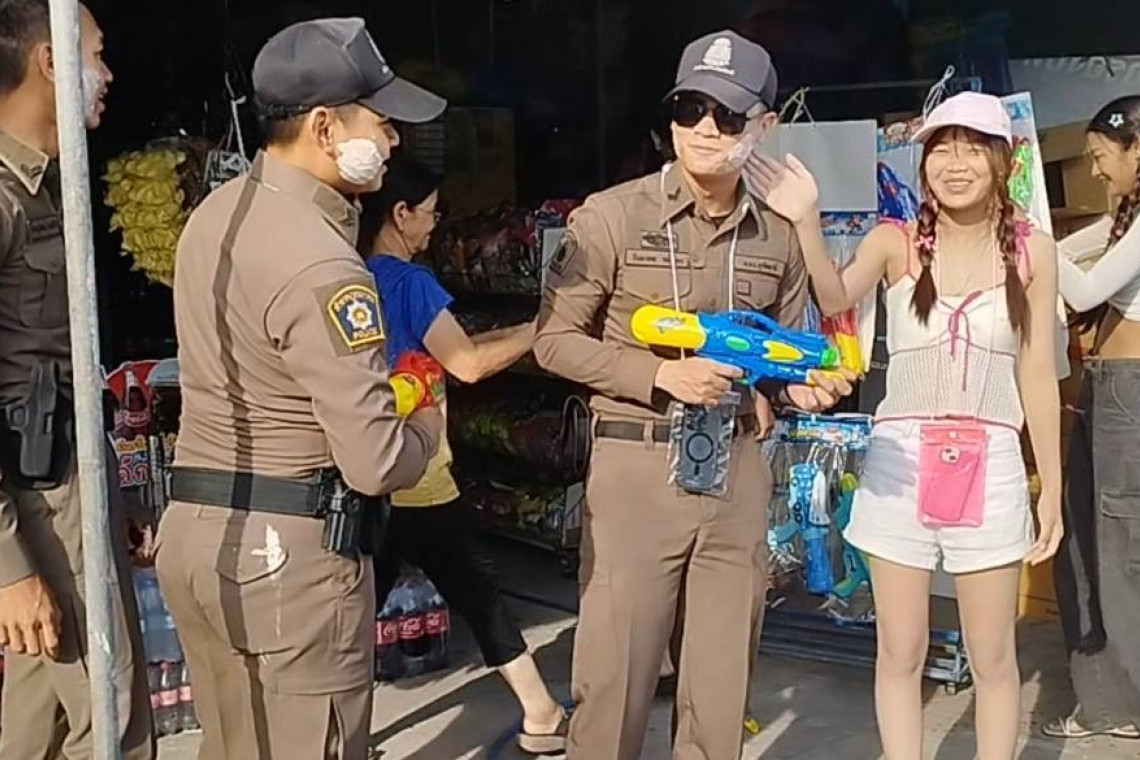 ทั้งนี้ยังมีเจ้าหน้าที่ตำรวจ เฝ้าระวังเหตุการณ์ ได้มาสร้างสีสันเล่นน้ำกับประชาชน โดยใช้ปืนฉีดน้ำใส่ประชาชนอย่างทะนุถนอม พร้อมกับห่วงใยประชาชน ให้ใช้รถอย่างระมัดระวัง หวั่นเกิดอุบัติเหตุดังกล่าว
