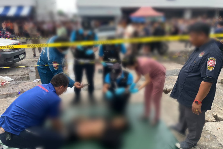 ที่เกิดเหตุพบศพชายนอนหงายไส้ทะลักจมกองเลือด มีรอยถูกอาวุธมีดแทงเป็นแผลฉกรรจ์กลางหน้าอก และบริเวณท้อง โดยผู้ตายอายุ 26 ปี เป็นชาวเมียนมาซึ่งพักอาศัยอยู่ในจังหวัดสมุทรสาคร
