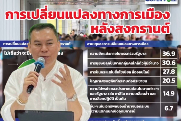 ‘ซูเปอร์โพล’เปิดผลสำรวจการเปลี่ยนแปลงทางการเมือง หลังสงกรานต์