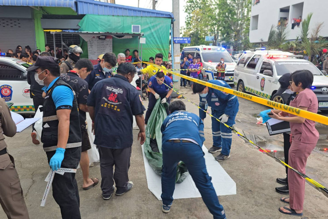 ผู้สื่อข่าววรายงานว่า เมื่อช่วงเย็นของวันที่ 14 เมษายน 2568 ที่ตำบลท่าทราย ร.ต.ท.สยามรัฐ เกตุรัตน์ รองสารวัตรสอบสวน สภ.เมืองสมุทรสาคร รับแจ้งเหตุมีคนถูกแทงเสียชีวิตบริเวณปากทางมหาชัยวิลล่าซอย 17 ม.7 ต.ท่าทราย อ.เมือง จ.สมุทรสาคร จึงรุดไปตรวจสอบพร้อมด้วย พ.ต.อ.พิเชษฐ์พงศ์ แจ้งค้ายคม ผกก.สภ.เมืองสมุทรสาคร พ.ต.ท.สุขุม เพาะไธสง รอง.ผกก.ป.สภ.เมืองสมุทรสาคร, พ.ต.ท.ไชยภูมิ ฉลองภูมิ รอง ผกก.สส.กก.ภ.จว.สมุทรสาคร, พ.ต.ท.โสภาส ถนนทิพย์ สวป.สภ.เมืองสมุทรสาคร และตำรวจชุดสืบสวน สภ.เมืองสมุทรสาคร พร้อมด้วยเจ้าหน้าที่วิทยาการจากกองพิสูจน์หลักฐานฯ ร่วมกับเจ้าหน้าที่มูลนิธิการกุศลสมุทรสาคร เข้าร่วมกันชันสูตรพลิกศพแรงงานเมียนมา ที่เสียขีวิตในที่เกิดเหตุไว้ประกอบการดำเนินคดีกับผู้ก่อเหตุต่อไป