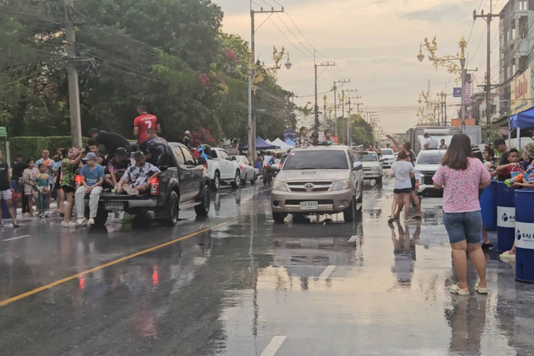 โดยเฉพาะ 2 วันที่ผ่านมา มีประชาชนหลายพันคน ขับรถบรรทุกน้ำ และรถเครื่องเสียงที่เปิดเพลงเสียดังกระหึ่ม มีกลุ่มวัยรุ่นเต้นกันไปตมจังหวะของเสียงเพลง และรถจักรยานยนต์ วัยรุ่น และวัยโจ๋ เข้ามาเล่นสงกรานต์กันเป็นจำนวนมาก เพื่อสาดน้ำ ปะแป้งกัน ส่งผลให้บริเวณถนนดังกล่าวรถติดเป็นทางยาว บ้างก็กระโดดลงเล่นน้ำ ซึ่งในวันนี้มีอากาศที่ร้อนมาก