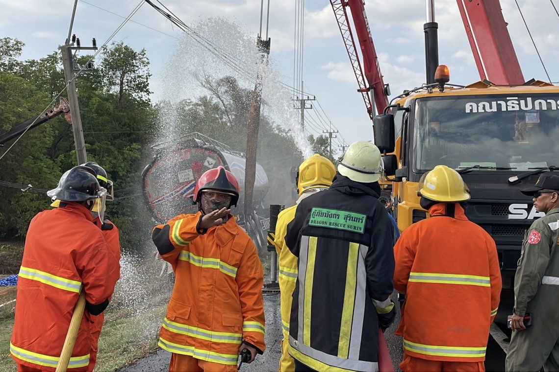 ต่อมา นายชำนาญ ชื่นตา ผู้ว่าราชการจังหวัดสุรินทร์ ได้ลงพื้นที่กำกับดูแลพร้อมกำชับเน้นย้้ำเพื่อให้เกิดความปลอดภัยต่อประชาชนเป็นที่ตั้ง โดยให้เจ้าหน้าที่ทุกคนทำงานด้วยความระมัดระวังและปลอดภัย พร้อมทั้งให้ตั้งศูนย์อำนวยการในการกู้รถน้ำมัน 42,000 ลิตรที่พลิกคว่ำ