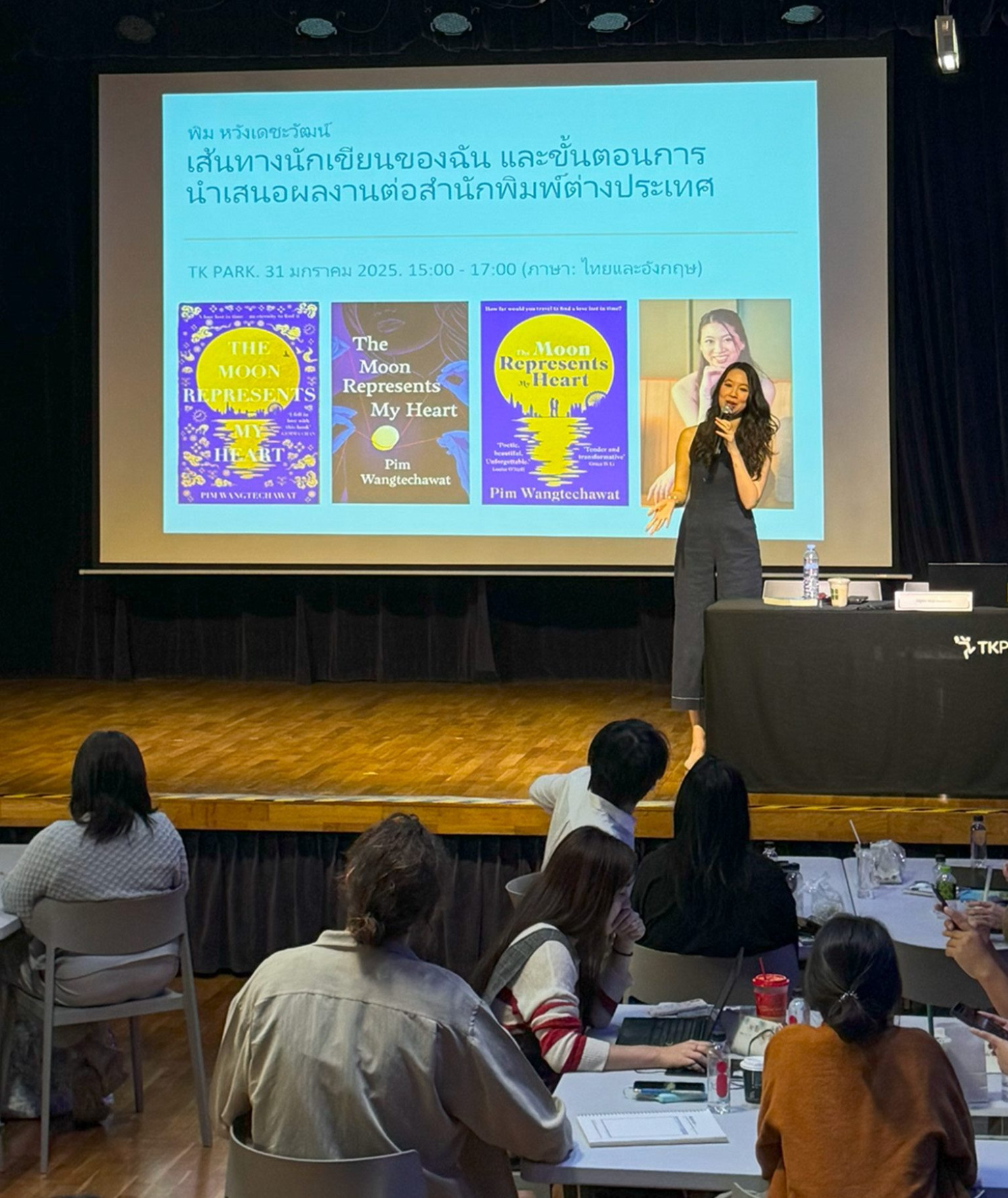 ในโอกาสฉลองครบรอบ 20 ปี สถาบันอุทยานการเรียนรู้ TK Park ศูนย์การเรียนรู้ที่จุดประกายความคิดสร้างสรรค์และสร้างแรงบันดาลใจให้นักอ่านและนักเขียนที่อยู่คู่สังคมไทยมาอย่างยาวนานได้เชิญ พิม หวังเดชะวัฒน์ นักเขียนไทยที่สามารถพาผลงานไปสู่เวทีระดับโลก เจ้าของผลงาน The Moon Represents My Heart – เราต่างเป็นดวงจันทร์อันโดดเดี่ยว นวนิยายที่ได้รับการแปลและตีพิมพ์ถึง 6 ภาษา ทั้งไทย อินโดนีเซีย รัสเซีย สเปน อิตาลี และ ตุรกี และถูกซื้อลิขสิทธิ์ไปพัฒนาเป็นซีรีส์ทาง Netflix มาร่วมพูดคุย บอกเล่าประสบการณ์ แลกเปลี่ยนมุมมองและความคิดเห็น รวมถึงโอกาสและอุปสรรคที่วงการนักเขียนไทยต้องเผชิญ พร้อมเปิดเวิร์กช็อปสุดพิเศษ “หนังสือไทยสู่ตลาดโลก” ที่เจาะลึกเทคนิคการสร้างสรรค์งานเขียน สร้างความประทับใจ และแนวทางการส่งออกวรรณกรรมไทยให้เป็นที่ยอมรับในระดับสากล พร้อมตอบคำถามที่หลายคนสงสัย “นักเขียนไทย สู้ต่างชาติได้ไหม?” “อยากเป็นนักเขียนที่ประสบความสำเร็จในระดับสากลต้องทำอย่างไร?” และงานเขียนแบบไหนที่มีโอกาสโดนใจในระดับสากล?