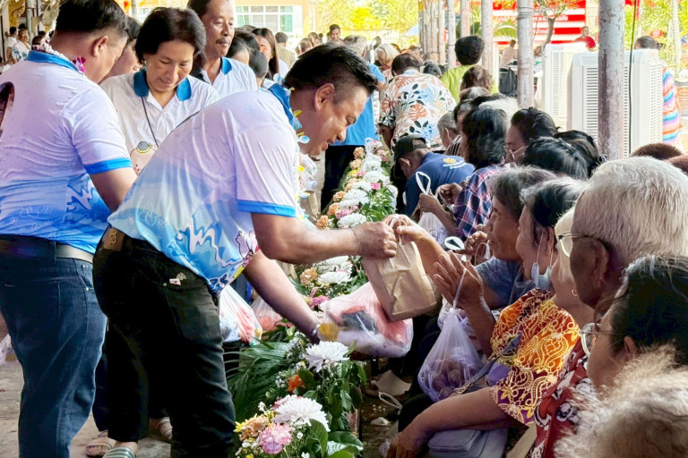 ซึ่งภายในงานได้จัดอาหารโต๊ะจีน เครื่องดื่ม มาให้ผู้สูงอายุ ผู้ที่มาร่วมงานรับประทานฟรีตลอดงาน นอกจากนี้ได้แจกเครื่องอุปโภคบริโภค ข้าวสาร ไข่ น้ำมันพืช และเสื้อยืด ให้ผู้สูงอายุกว่า 300 ชุด ผู้สูงอายุบางรายถึงกับถือของแจกกลับบ้านไม่ไหว ต้องให้ลูกหลานมาช่วยถือของกลับบ้าน เนื่องจากมีของมาแจกให้หลายอย่าง และยังได้แจกเงินให้ผู้สูงอายุกับ อสม.คนละ 100 บาท เพื่อเป็นการช่วยแบ่งเบาภาระค่าใช้จ่ายในครัวเรือน เป็นขวัญและกำลังใจให้แก่ผู้สูงอายุ และเป็นของขวัญเทศกาลสงกรานต์ วันปีใหม่ไทย ซึ่งทาง อบต.ต้นตาล ได้ตระหนักและเล็งเห็น ความสำคัญกับผู้สูงอายุและสถาบันครอบครัว โดยได้จัดกิจกรรมให้ความรู้เรื่องการดูแล สุขภาพอนามัยให้กับผู้สูงอายุในพื้นที่มาอย่างต่อเนื่อง พร้อมกับจัดดนตรี นักร้องมาขับร้องเพลงให้ฟัง มีผู้สูงอายุและ อสม.ออกมารำ มาเต้นอย่างสนุกสนาน