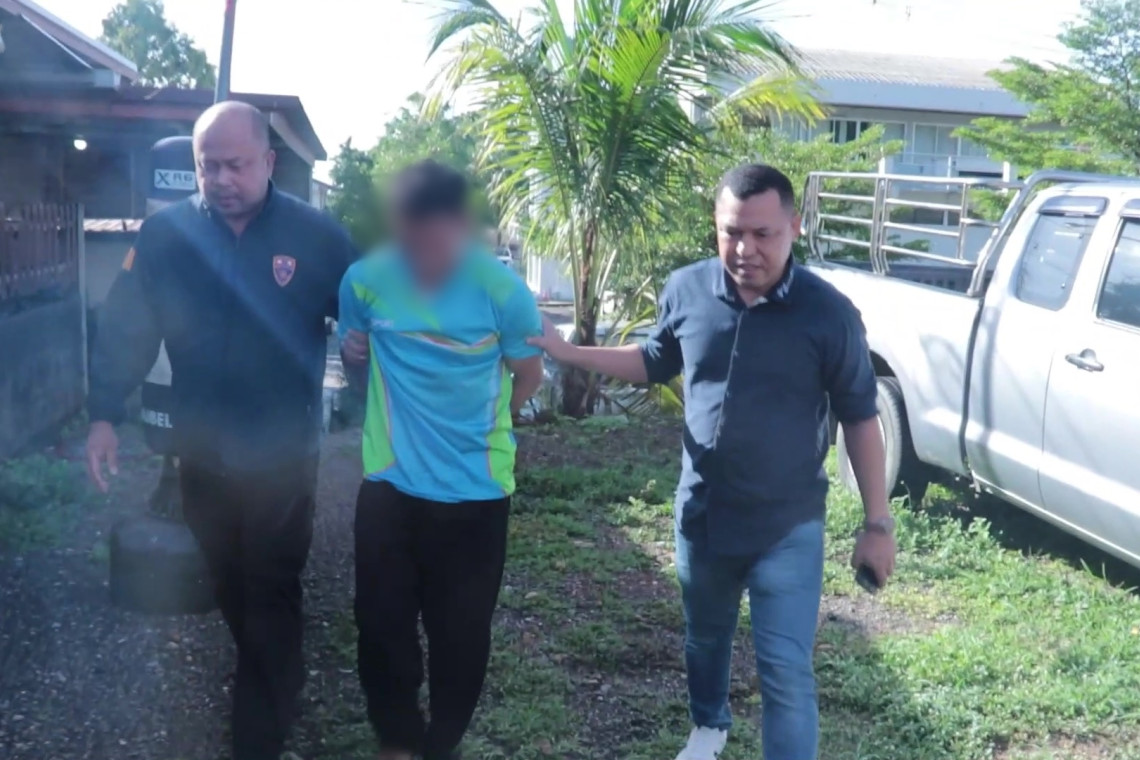 จนกระทั่งเมื่อช่วงเช้าที่ผ่านมา ทางเจ้าหน้าที่ตำรวจได้ทำการจู่โจมเข้าจับกุมนายอาว ได้โดยละม่อม ขณะที่นายอาว กำลังนอนเล่นอยู่หน้ากระท่อม ภายในสวนทุเรียนที่เพื่อนซึ่งทราบชื่อภายหลังคือนายมิน และเมื่อนายอาวเห็นเจ้าหน้าทีตำรวจ ได้พยายามวิ่งหลบหนีเข้าไปในสวนทุเรียน จนล้มลุกคลุกคลาน จนถูกจับได้ในที่สุด