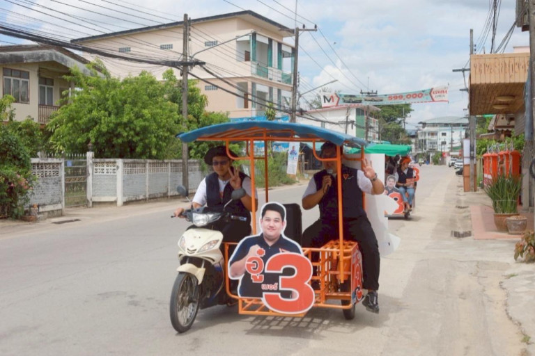 อู๋เบอร์ 3 จากพรรคประชาชน “ พาหนะที่จะไปหาพ่อแม่พี่น้องเทศบาลแม่สอดพร้อมแล้วครับ ” เจอที่ไหนเรียกทักทายให้กำลังใจกันนะครับ ผมไปบอกความตั้งใจที่จะทำ ไปอธิบายนโยบายต่างๆ อู๋ บอก "ผมคนธรรมดา”