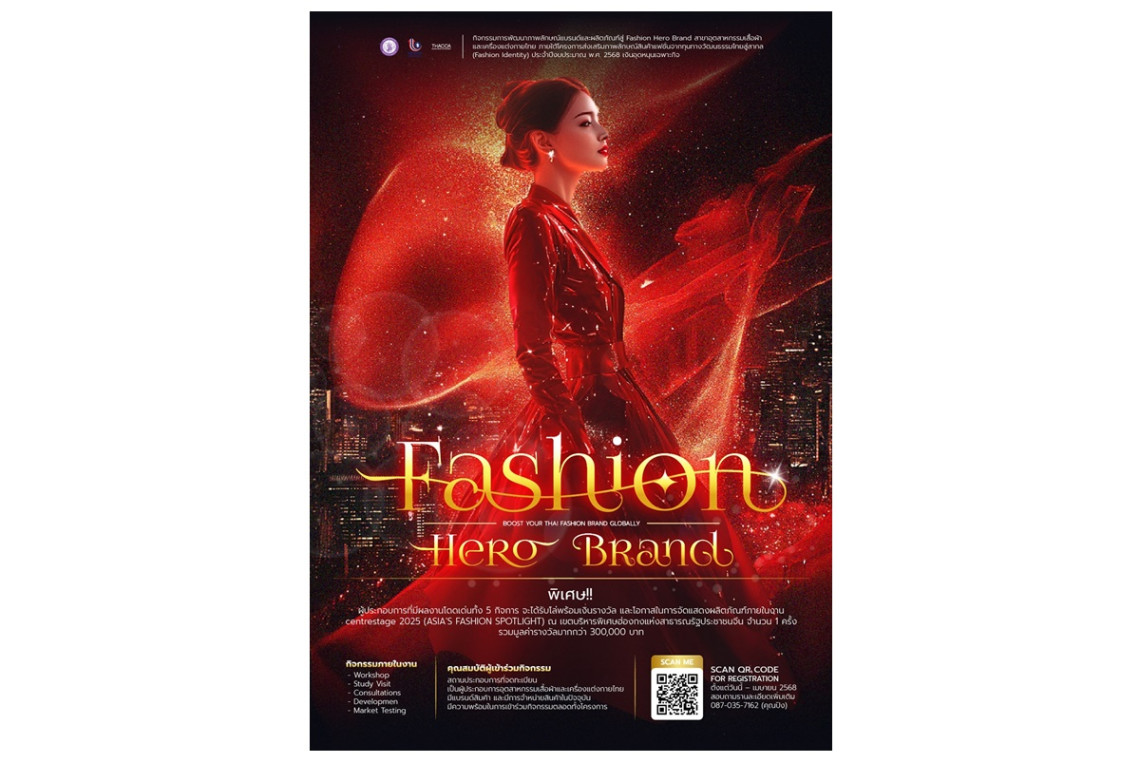 ทั้งนี้ขอเชิญผู้ประกอบการ SME วิสาหกิจขนาดกลางและขนาดย่อม หรือสถานประกอบการที่มีการจดทะเบียนเป็นนิติบุคคล ทะเบียนการค้า ทะเบียนพาณิชย์ สาขาอุตสาหกรรมเสื้อผ้าและเครื่องแต่งกายไทย สมัครเข้าร่วม "กิจกรรมการพัฒนาภาพลักษณ์แบรนด์และผลิตภัณฑ์สู่ Fashion Hero Brand สาขาอุตสาหกรรมเสื้อผ้าและเครื่องแต่งกายไทยภายใต้โครงการส่งเสริมภาพลักษณ์สินค้าแฟชั่นจากทุนทางวัฒนธรรมไทยสู่สากล (Fashion Identity) พร้อมรับสิทธิประโยชน์มากมาย อาทิ ร่วมสัมผัสประสบกาณ์ด้านการสร้างแบรนด์ การประกอบธุรกิจด้านแฟชั่น โดยตรงจากเจ้าของแบรนด์ระดับประเทศ เรียนรู้เชิงลึกครอบคลุมทุกมิติกับกูรูตัวท็อปของประเทศ ศึกษาดูงานแบรนด์ไทยที่มีชื่อเสียงระดับโลก ชิงเงินรางวัล พร้อมโล่รางวัลและวุฒิบัตร โอกาสจัดแสดงสินค้าในงาน CENTRESTAGE (ASIA'S FASHION SPOTLIGHT) ณ เขตบริหารพิเศษฮ่องกงแห่งสาธารณรัฐประชาชนจีน จำนวน 5 แบรนด์ที่มีศักยภาพโดดเด่น โดยผู้ชนะเลิศอันดับ 1 จะได้นำเสื้อผ้า 1 Collection ร่วมเดินแบบในงาน Centrestage 2025 ณ เขตบริหารพิเศษฮ่องกง สาธารณรัฐประชาชนจีน