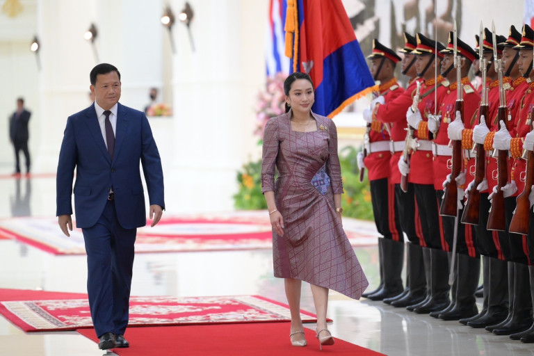 เมื่อเวลา 09.50 น. วันที่ 23 เม.ย. 68  นางสาวแพทองธาร ชินวัตร นายกรัฐมนตรี เดินทางเยือนประเทศกัมพูชาอย่างเป็นทางการในโอกาส ครบรอบความสัมพันธ์ ไทย-กัมพูชาครบ 75 ปี โดยมีนายสุริยะ จึงรุ่งเรืองกิจ รองนายกฯ และรมว.คมนาคม นายอนุทิน ชาญวีรกูล รองนายกฯ และรมว.มหาดไทย นายมาริษ เสงี่ยมพงษ์ รมว.การต่างประเทศ นายเฉลิมชัย ศรีอ่อน รมว.ทรัพยากรธรรมชาติและสิ่งแวดล้อม และนายพิพัฒน์ รัชกิจประการ รมว.แรงงานร่วมเดินทาง โดยเมื่อนายกรัฐมนตรีและคณะเดินทางถึงท่าอากาศยานนานาชาติกรุงพนมเปญ ราชอาณาจักรกัมพูชา นางจอม นิมล (H.E. Mrs. Cham Nimul) รมว.พาณิชย์กัมพูชา ในฐานะรัฐมนตรีเกียรติยศ พร้อมคณะฝ่ายกัมพูชาได้ให้การต้อนรับ