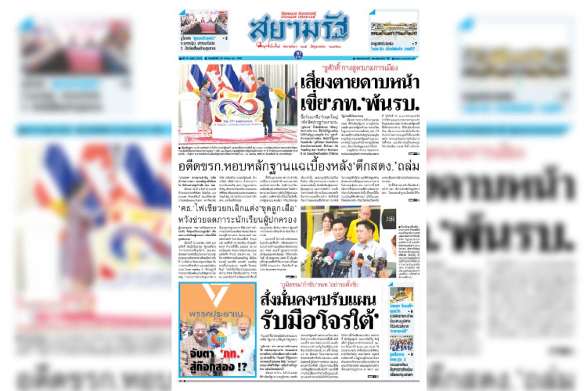 หน้า 1 หนังสือพิมพ์สยามรัฐรายวัน ฉบับวันพฤหัสบดีที่ 24 เมษายน 2568