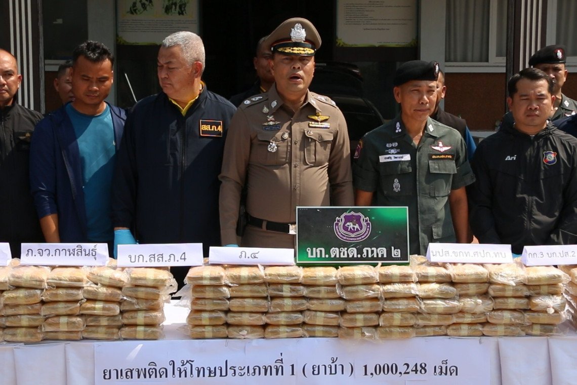 จนกระทั่งกลางดึก คืนที่ผ่านมา เจ้าหน้าที่ตำรวจ บก.ตชด.ภาค 2 พบรถเก๋งคันดังกล่าว ขับอยู่บนเทือกเขาภูพาน มุ่งหน้าไปทาง อ.สมเด็จ จ.กาฬสินธุ์ และเมื่อถึงพื้นที่อ.สมเด็จ รถคันดังกล่าว เลี้ยวขวาไปทางอ.สหัสขันธุ์ จ.กาฬสินธ์ จึงประสานกำลังร่วม บก.สส.ภ.4 สกัดรถคันดังกล่าวไว้ได้ในพื้นที่ บ้านโคกใส ม.5 ต.โนนแหลมทอง อ.สหัสขันธ์ จ.กาฬสินธ์ โดยมีผู้ชายเป็นคนขับและมีหญิงสาวนั่งคู่ที่เบาะหน้า จึงเข้าควบคุมตัวเอาไว้ ค้นในกระเป๋าะพายที่วางอยู่มนรถ พบยาบ้าบรรจุในถุงพลาสติก 248 เม็ด และตรวตค้นในรถ พบกระสอบสีดำ จำนวน 3 กระสอบ เมื่อเปิดกระสอบออกดูพบยาบ้า รวม 1,000,000 เม็ด รวมเป็นยาบ้าที่ยึดได้ทั้งหมด 1,000 ,248 เม็ด จึงควบคุมตัวทั้ง 2 คนไปสอบสวน
